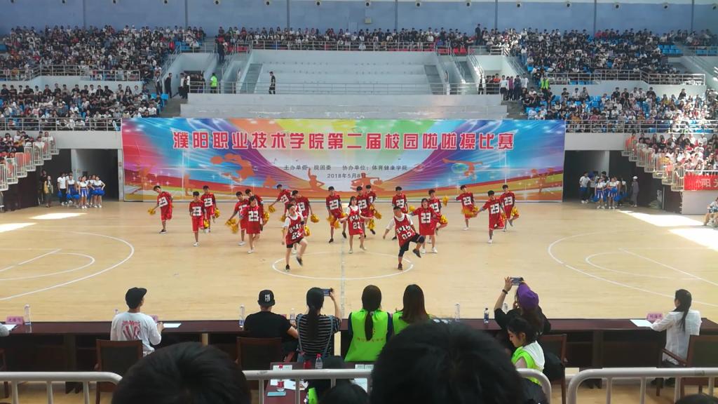 2018年5月8日下午,濮阳职业技术学院第二届校园啦啦操比赛在体育馆拉开帷幕。十个二级学院代表队参加了此次比赛。党委委员副院长侯秀安,校团委书记刘炜以及1000多名师生共同欣赏了此次视觉盛宴。