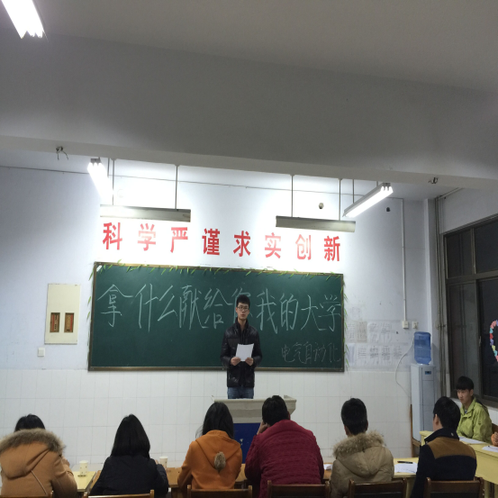 2015年12月7日,机电工程系15级电气自动化班举行以“拿什么献给你,我的大学”为主题的演讲比赛活动。本次比赛中王素霞老师号召同学们积极参加,同学们都非常积极踊跃报名!在演讲中同学们慷慨激昂,声荣并茂。举行本次活动是为了给同学提供一个锻炼自己,展现自己的平台,用演讲比赛的形式来增强大家的自信心和表达能力,丰富课余生活,通过本次演讲比赛,进一步规范学生的行为,使学生树立正确的道德观、价值观、人生观于一心的观念,能在今后的学习生活中以实际行动为自己负责,为家长负责,为老师负责,大一美好时光已经过去一半的时间,我们收获了多少,对自己今后的学习生活有一定的规划。