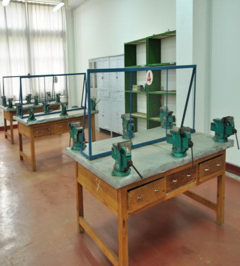 钳工实训室覆盖了机制、机电、汽车、电气等专业技能实训。钳工实训室主要承担钳工、工具钳工等实训教学任务以及钳工、工具钳工的技能培训和鉴定工作。实训室面积230m2。