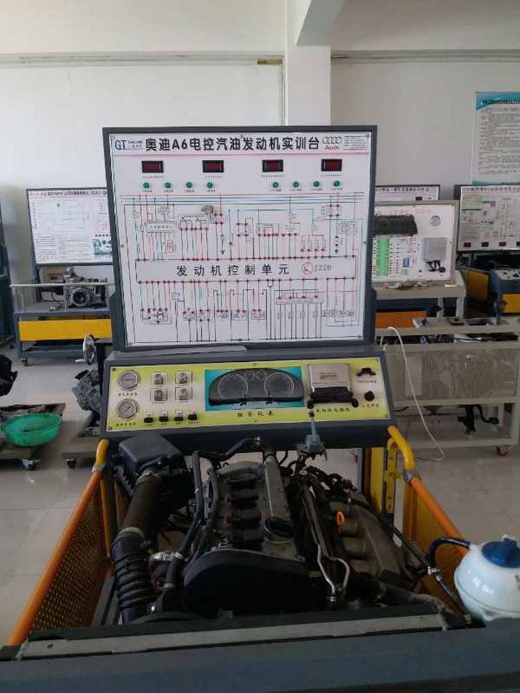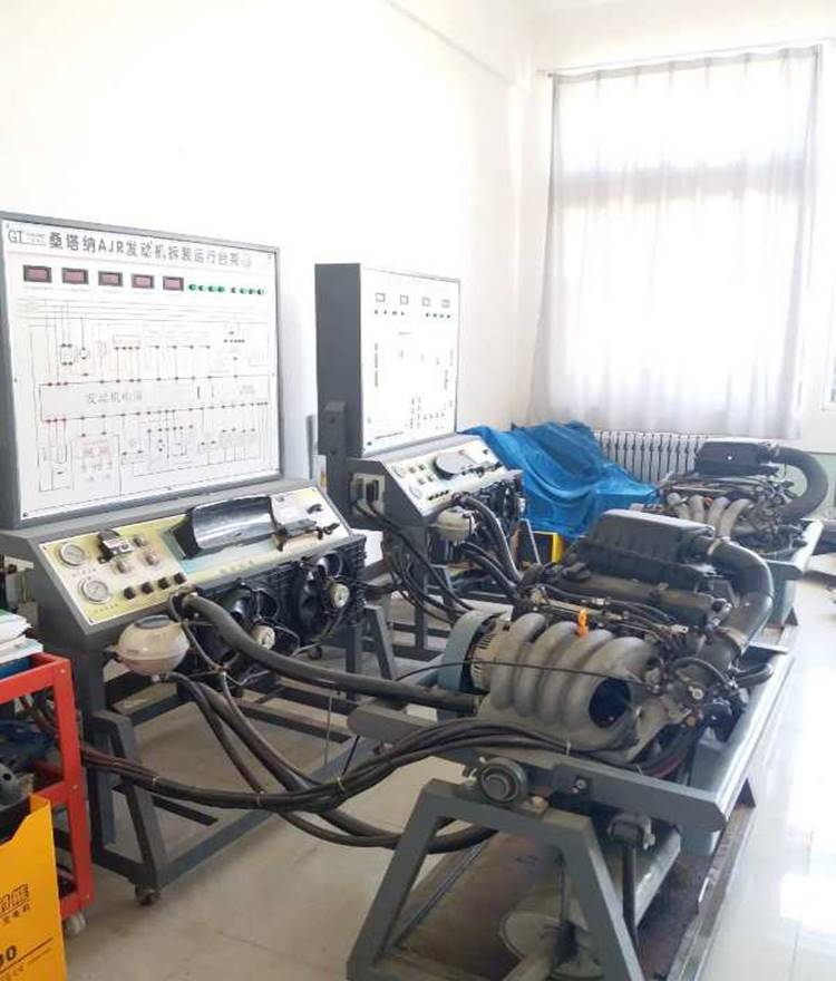 该实训室主要配备电控发动机拆装运行实验台,可满足对发动机的结构、原理、拆装、检测和调试的教学要求,并可进行汽车的专业考核和培训。可进行发动机电控系统检修、各传感器的检测、电控系统的故障演示等实验项目,通过实训,让学生能很好地理解和掌握发动机电控系统的结构、检修方面的基本知识,为从事发动机电控系统的维修工作打下良好的基础。