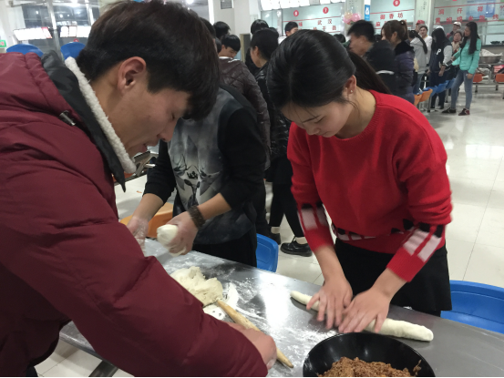 2015年12月21日,濮阳职业技术学院机电工程系开展冬至包饺子活动,活动由女工部组织,到场的有呼晓璐老师和王亚老师、主席团及各部部长,大一学生会干事全员参加。