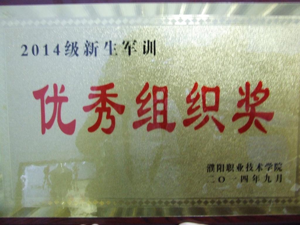 我系在2014级新生军训检阅仪式中荣获“优秀组织奖”?